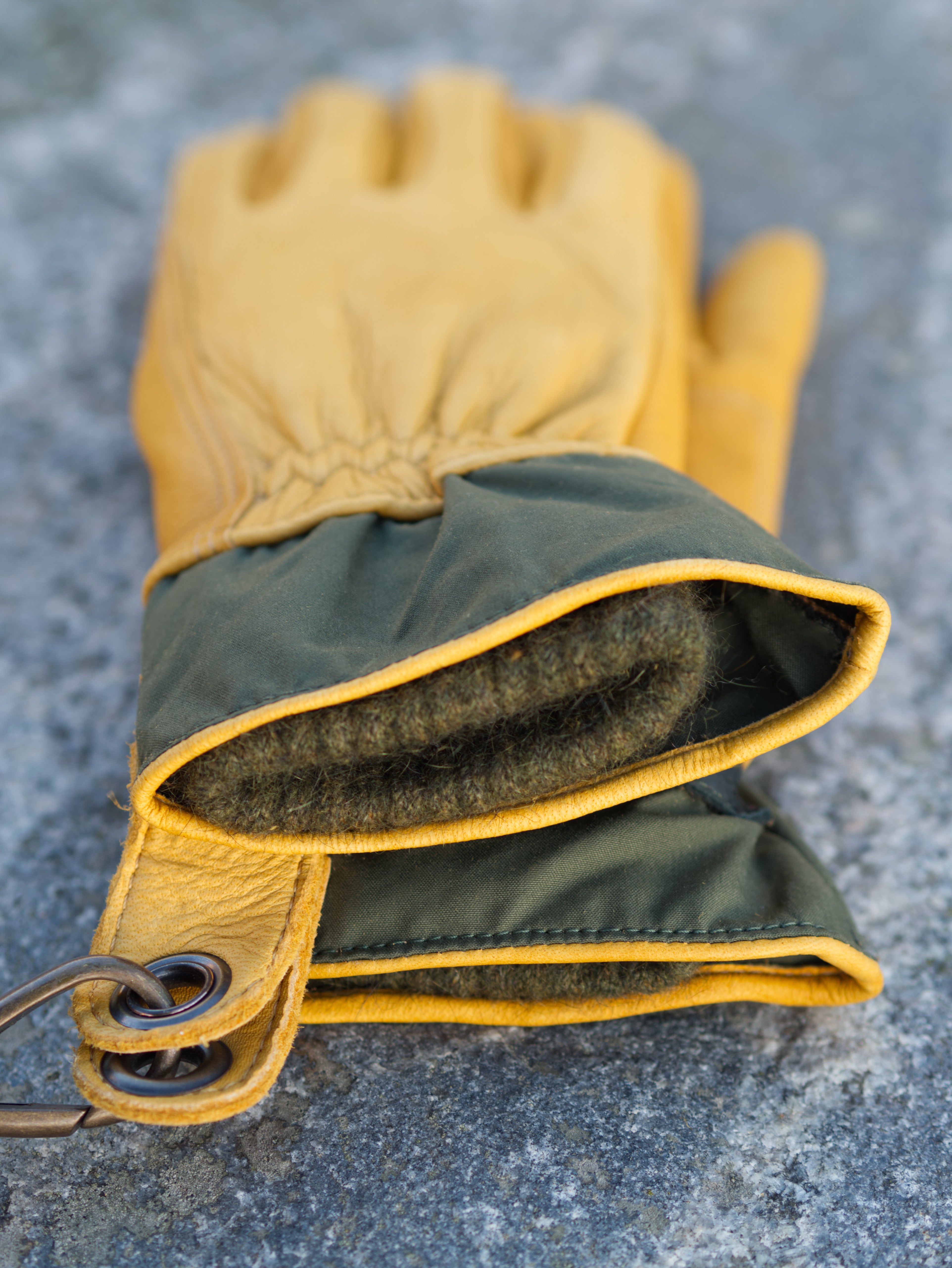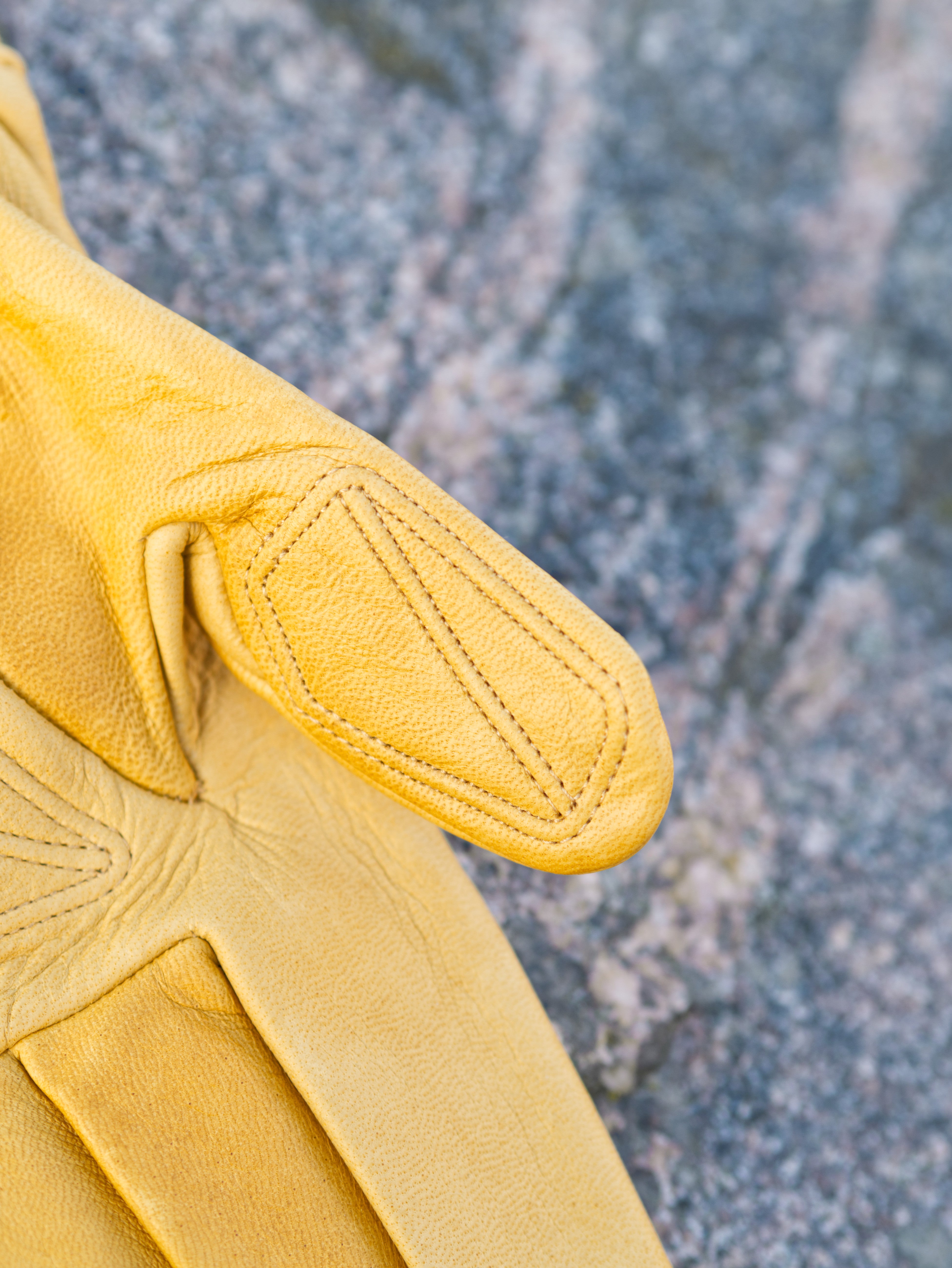 Thick, durable, and soft elk leather provides good grip and durability, for example, when splitting wood. High-quality full-grain leather develops a beautiful patina over time. The elk leather used in these gloves is thicker than usual and therefore more durable. The leather is treated to be oilier than usual, making it water-repellent with excellent grip and a firm feel.