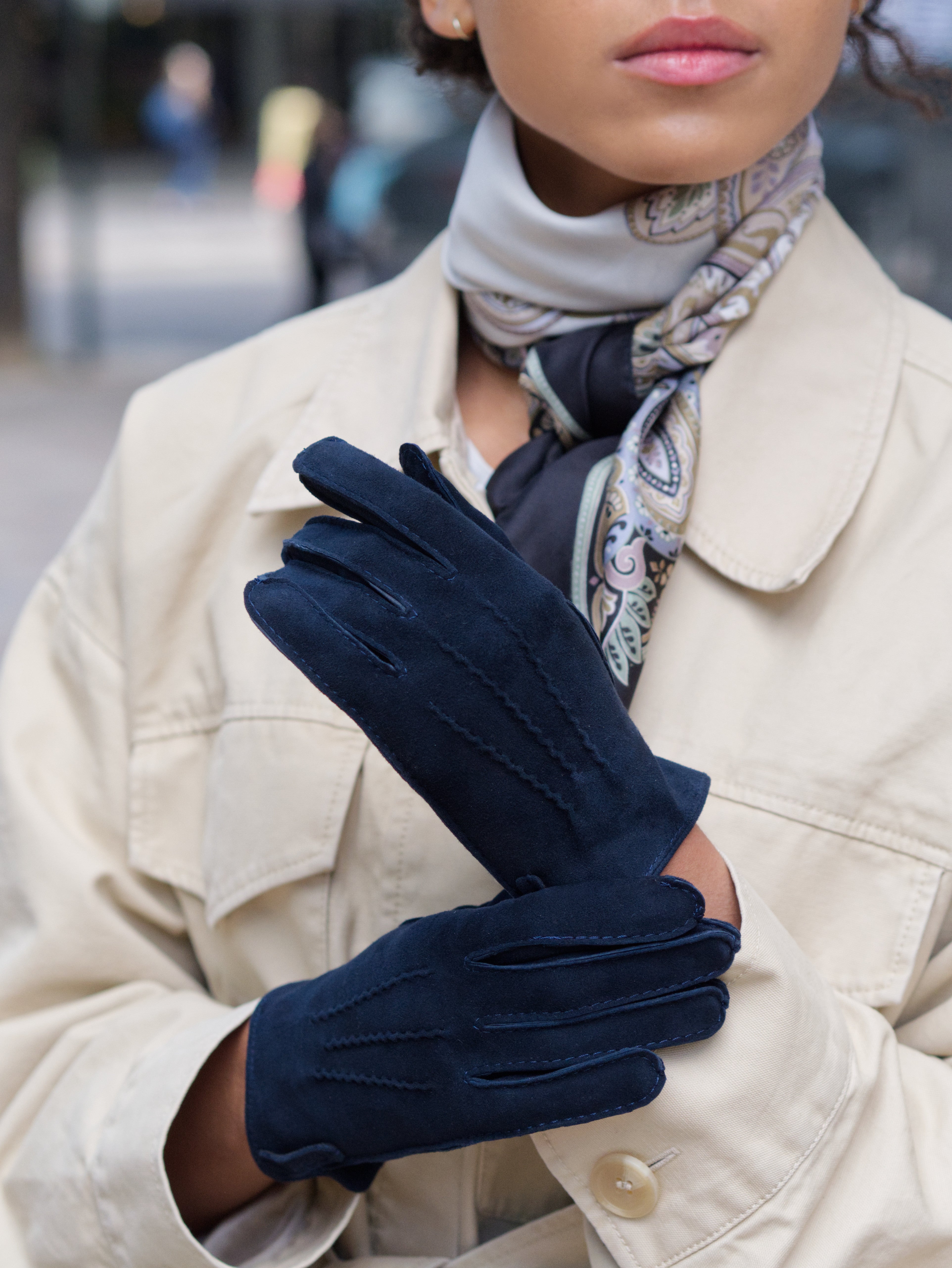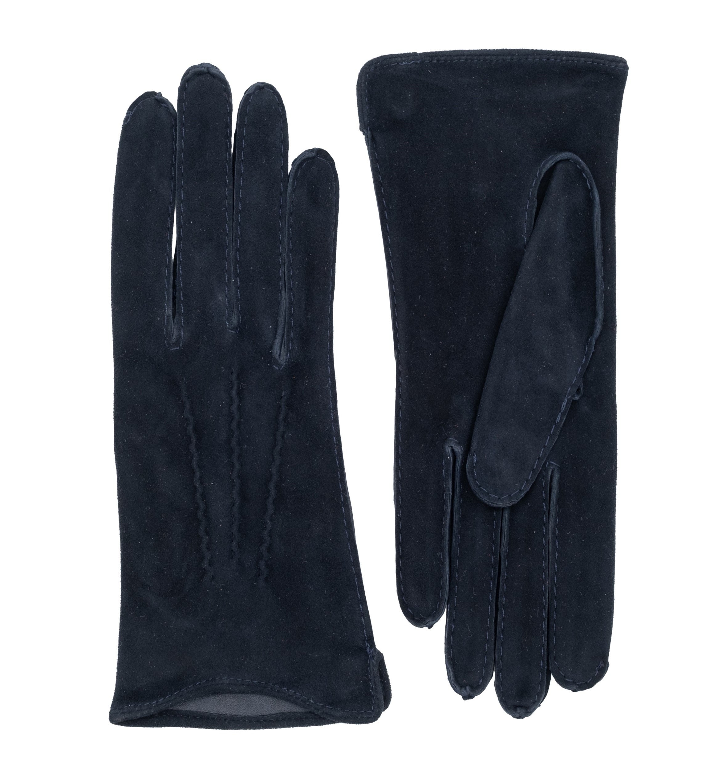 Dark blue suede gloves.