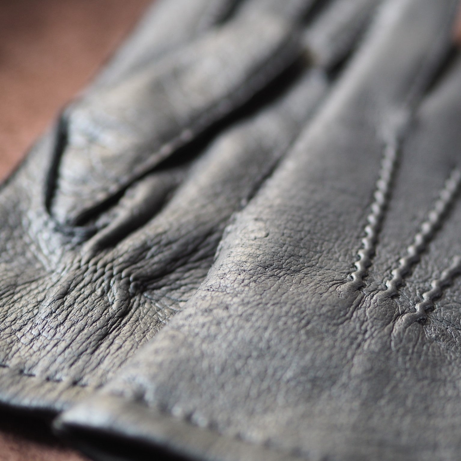 Peccary wild boar leather is relatively thick, and therefore the gloves are sewn with a reverse seam, meaning the seam is also on the outside. The sewing is very precise and time-consuming.