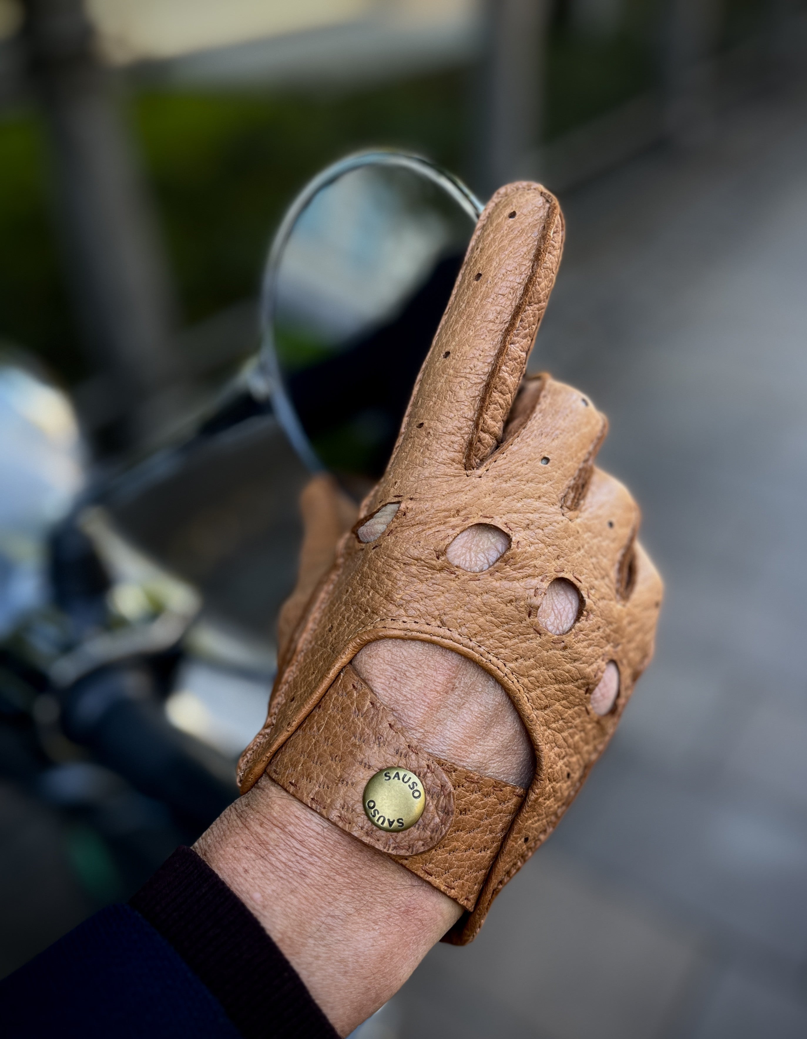 • Classic Peccary wild boar leather driving gloves.