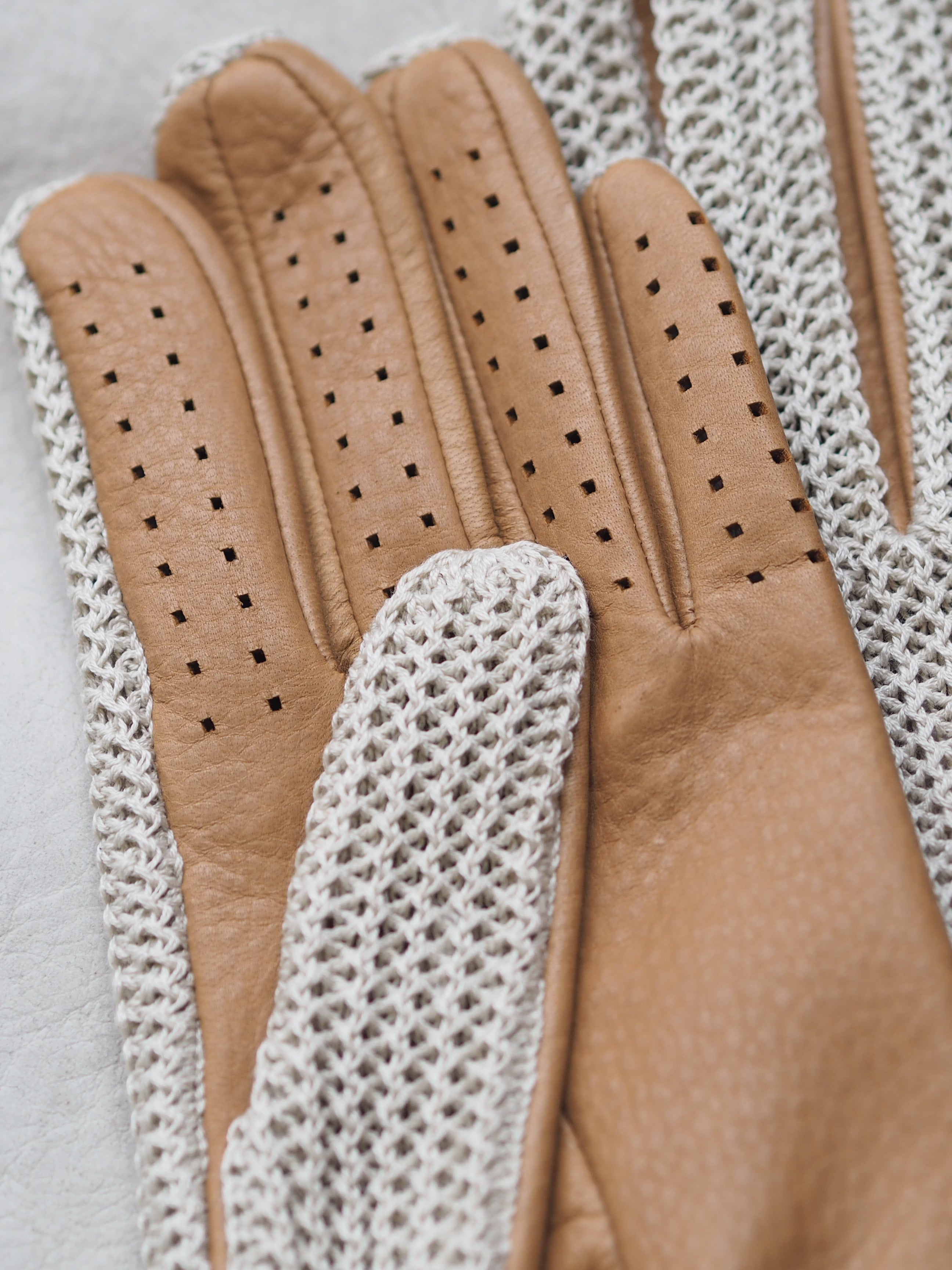 The cotton knit on the back of the hand makes the glove very breathable. The short-cuffed, unlined glove is well suited for use from spring to autumn and as a driving glove.