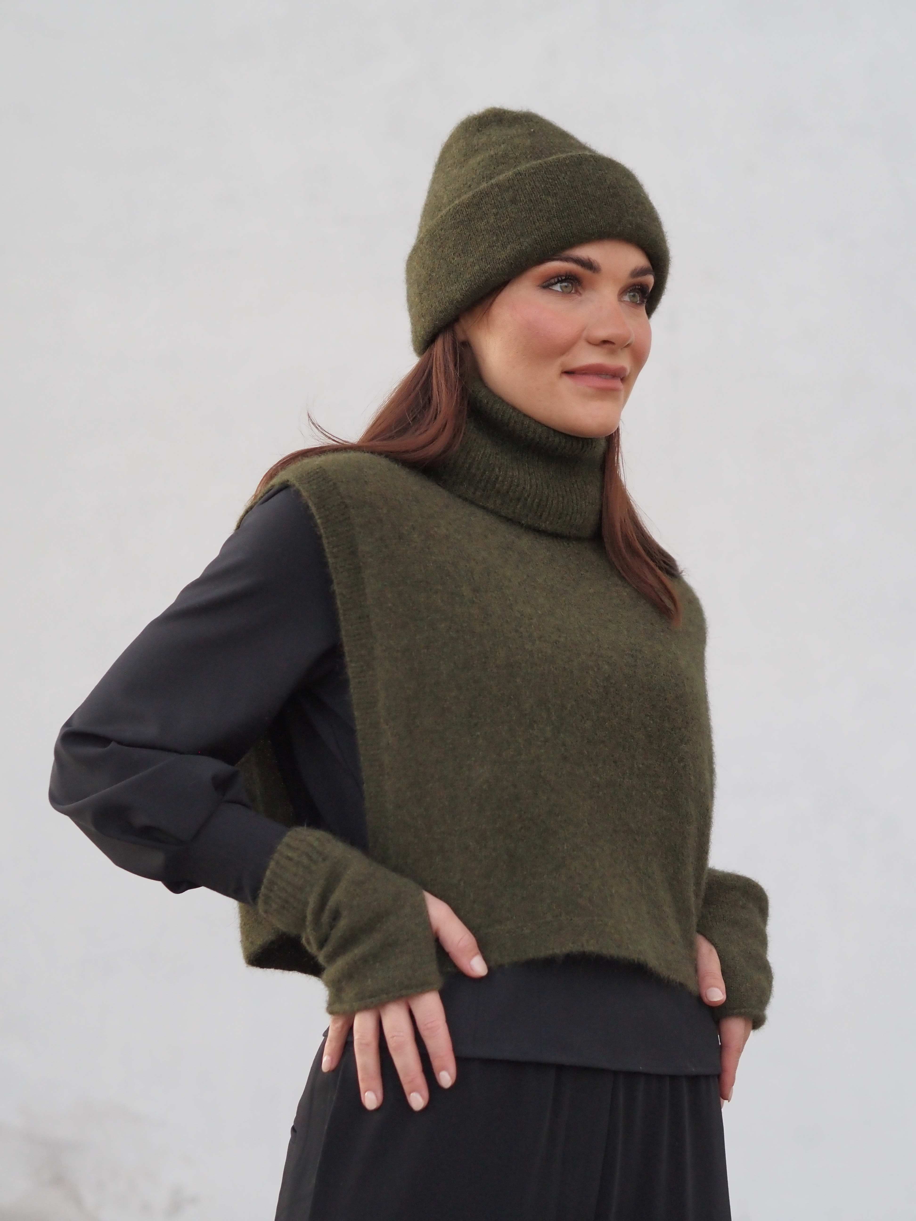A very versatile knit suitable for all kinds of outfits, whether at home, in the city, or outdoors. You can throw the collar over any garment when you need extra warmth and wind protection. The wonderfully soft, breathable, and warm knit replaces a scarf and sweater.