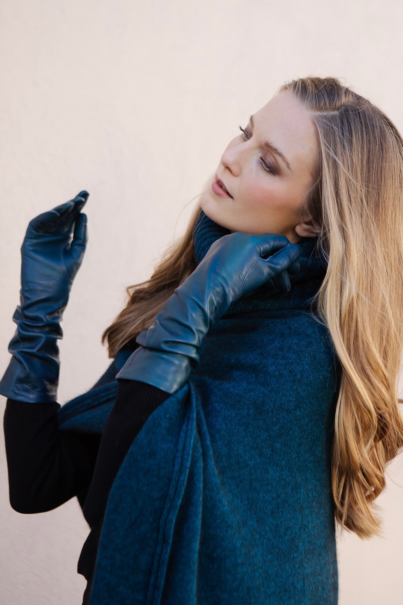 - Sileäneuloksinen, meleerattu petroolin värinen huiviponcho